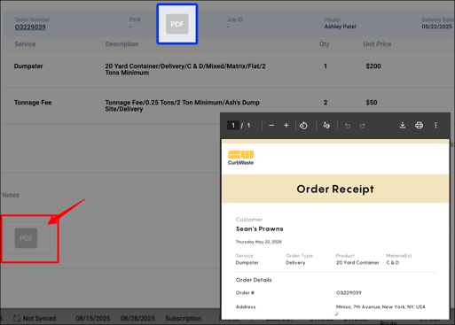 You can find the Order Receipt PDF on invoices underneath the Notes section.