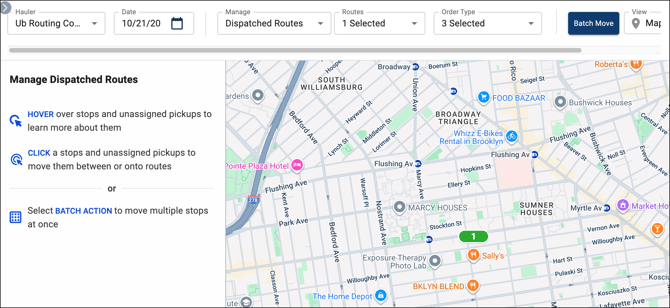 Dispatchers can manage dispatched routes on a more granular level:- On a single screen, quickly determine where to place on call pickups