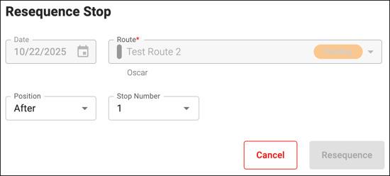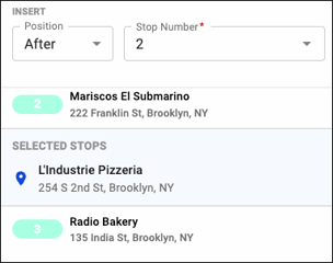 When adding, moving, or resequencing stops, you must select a target stop number.