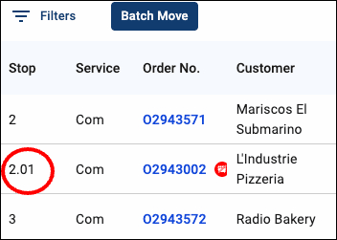 When you insert a stop before or after an existing stop, the existing stop numbers will not change. Instead, the inserted stop will receive a decimal place number in ascending order. For example, a stop added after stop 2 will receive stop number 2.01.