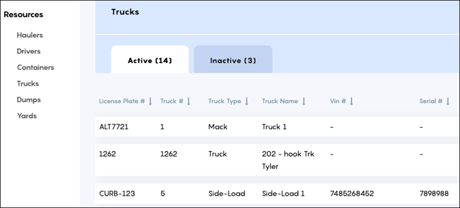 Your truck names in Samsara must much the Truck Names in CurbWaste. If you are unsure what your Truck Names are, navigate to Resources → Trucks.